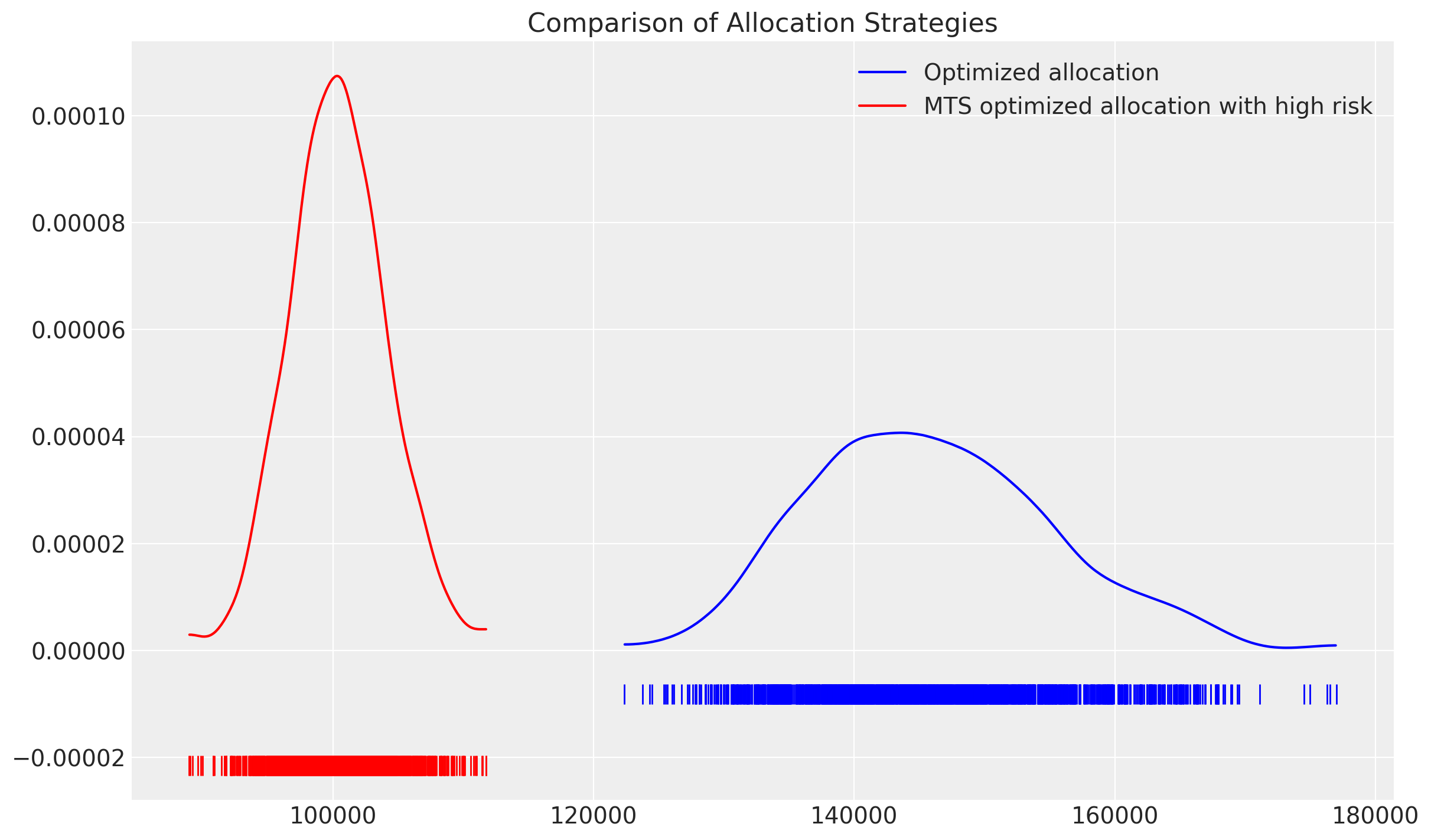 Great, here its clear how different strategies can lead to similar results, but with different risk profiles. Some distributions are more narrow, and some are more spread based on the risk tolerance.